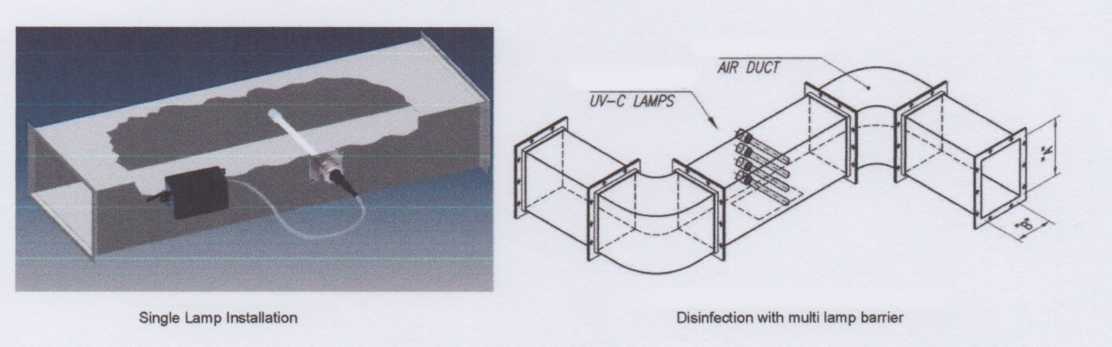 Υπάρχουν πολλές εφαρμογές για αυτήν τη σειρά. Τα AIR UV μπορούν να εγκατασταθούν μέσα στους αεραγωγούς ή στο τελικό μέρος του AHU (Air Handling Unit – Μονάδα Διαχείρισης Αέρα). Τα AIR UV δημιουργούν ένα φράγμα που αναστέλλει τον πολλαπλασιασμό ιών, βακτηριδίων, μούχλας και σπορίων που εγκαθίστανται μέσα στα συστήματα κλιματισμού.